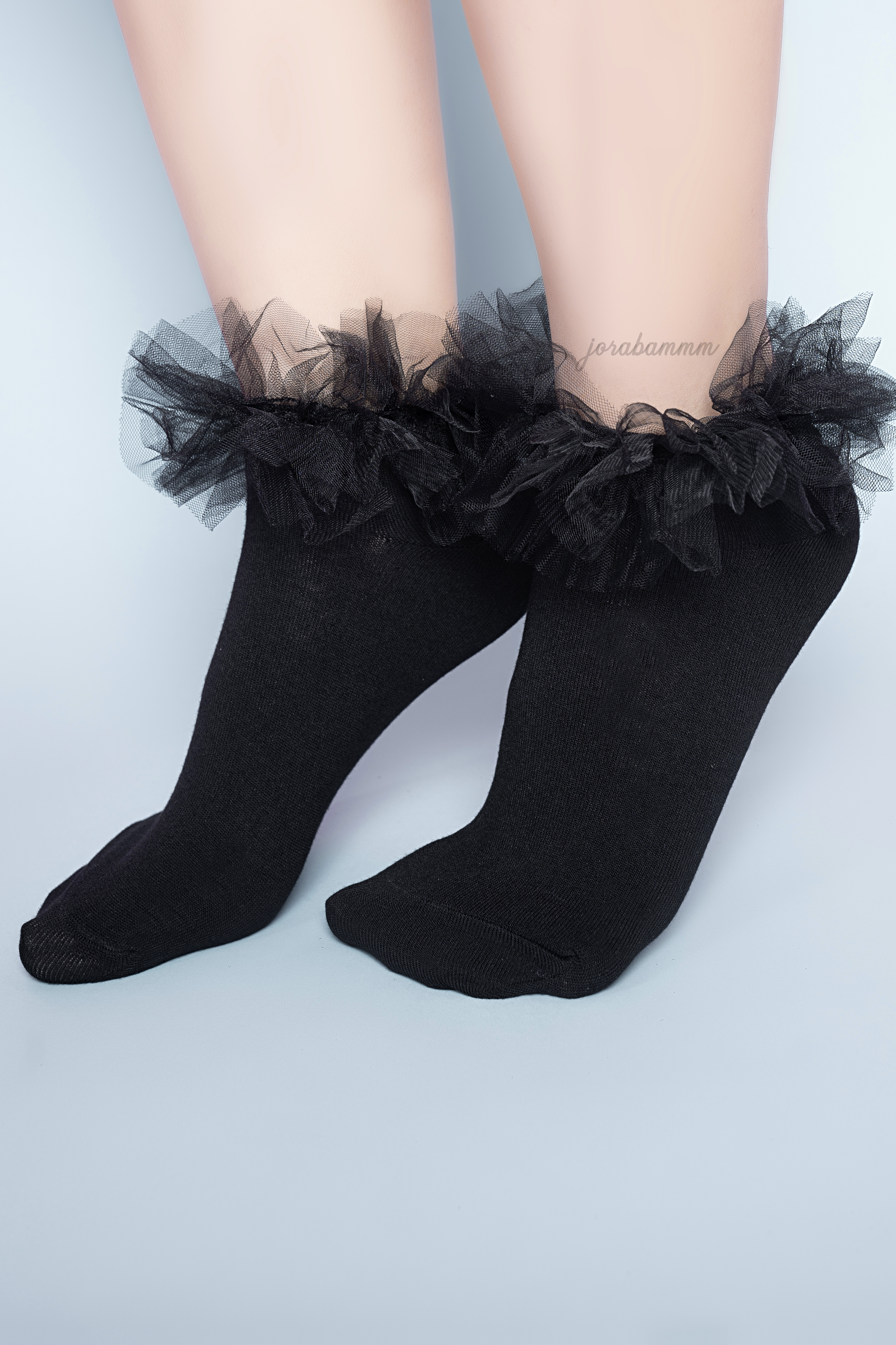 جوراب مچی زنانه مشکی با نوار رنگین کمونی
